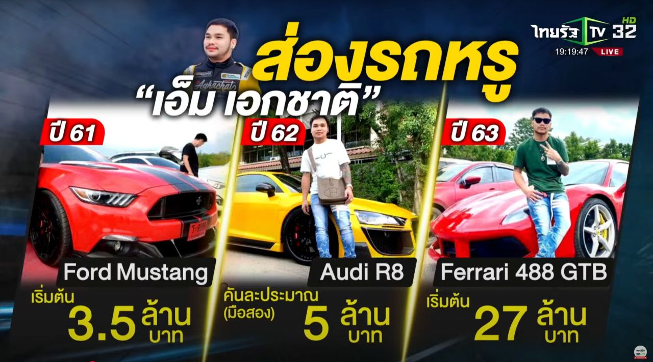 นอกจากนี้ เอ็ม เอกชาติ ยังเคยถ่ายรูปกับรถหรูหลายคัน อาทิ ปี 61 ถ่ายภาพกับ Ford Mustang สีแดง ราคา 3.5 ล้านบาท, ปี 62 ถ่ายคู่กับ Audi R8 สีเหลือง (มือสอง) ราคาคันละประมาณ 5 ล้านบาท, ปี 63 Ferrari 488 GTB สีแดง ราคาเริ่มต้น 27 ล้านบาท, ปี 64 Lamborghini Huracan เริ่มต้น 25-30 ล้านบาท, ปี 65 Nissan GT-R R35 เริ่มต้น 10 ล้านบาท, ปี 66 BMW M2 Coupe เริ่มต้น 6.2 ล้านบาท อย่างไรก็ตาม ไม่แน่ใจว่าจะเป็นรถของเอ็ม เอกชาติ ทั้งหมดหรือไม่