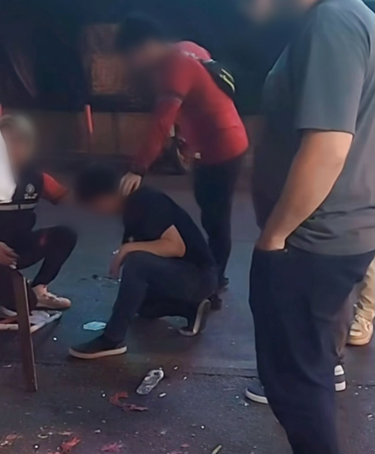 โดยฝ่ายการ์ดสถานบันเทิง ได้ทำร้ายคนเมา จนใบหน้าเต็มไปด้วยเลือด ล้มกลิ้งลงกลางถนน โดยที่ไม่แคร์สายตานักท่องเที่ยวที่เดินทางไปผ่านมาจำนวนมาก ซึ่งคลิปมีความยาวอยู่ที่ 3.55 นาที พร้อมกับระบุข้อความว่า "เปรี้ยงเดียวเลือดกบปากผมไม่รู้กรอก เหตุการณ์ก่อนหน้านี้เป็นยังไง แต่คนทำเกินกว่าเหตุ ผมว่า"