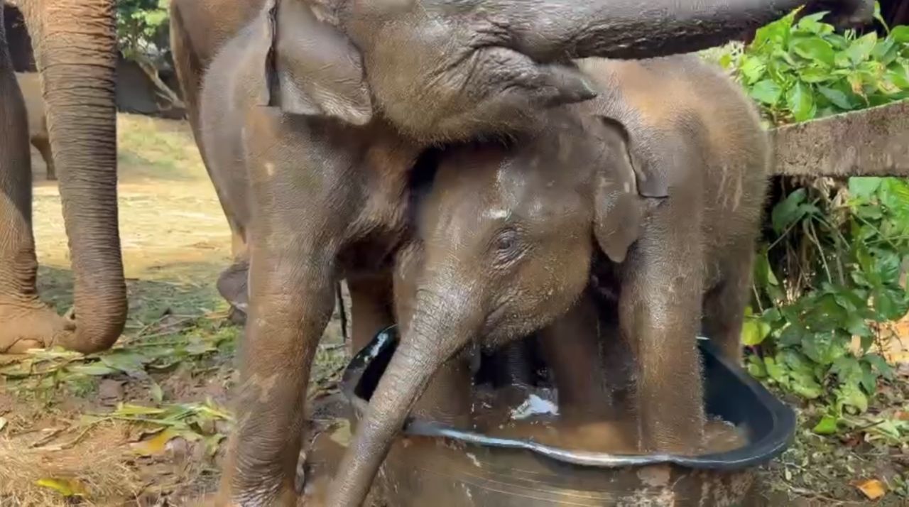 เอ็นดู "พลายเมฆา" ช้างน้อยวัย 14 เดือน ลงกะละมังเล่นน้ำต้อนรับฤดูร้อนอย่างเป็นทางการ ด้านชาวโซเชียลพากันแซว กะละมังสู้ชีวิตมาก