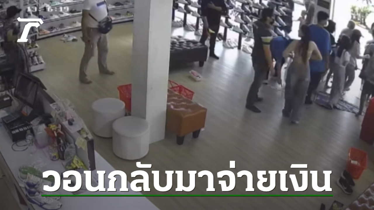 พริตตี้ขายรองเท้า เผยคลิปจากกล้องวงจรปิดขณะเกิดเหตุแผ่นดินไหว วอนลูกค้ากลับมาจ่ายเงินก่อน หลังมีบางคนตกใจถือสินค้าออกไปด้วย