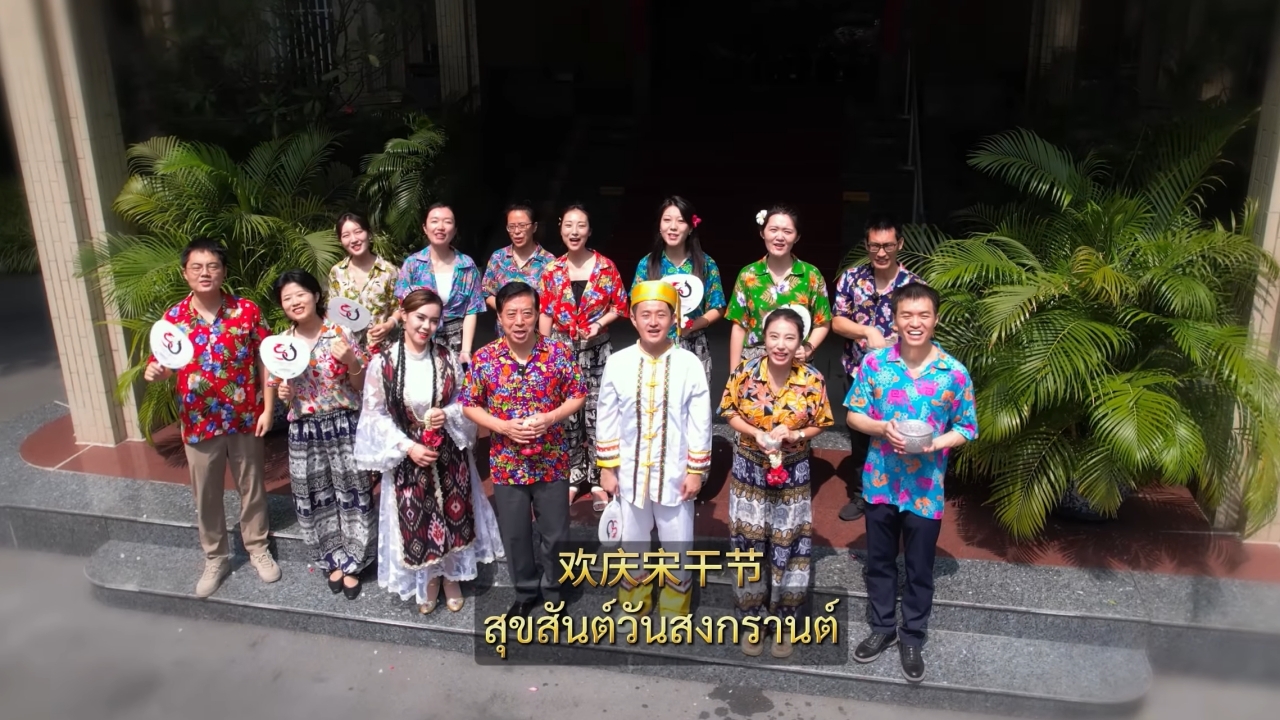 ในคลิปดังกล่าว นอกจากคำอวยพรจากเจ้าหน้าที่สถานทูตแล้ว ยังมีภาพบรรยากาศการเฉลิมฉลองเทศกาลสงกรานต์สุดอบอุ่น เต็มไปด้วยรอยยิ้มที่จัดขึ้นโดยมีนักศึกษาจีนชาวอุยกูร์จากเขตปกครองตนเองซินเจียงอุยกูร์ และนักศึกษาจีนชาวจ้วงจากเขตปกครองตนเองกว่างซีจ้วง ที่กำลังศึกษาอยู่ในประเทศไทย ร่วมเฉลิมฉลองเทศกาลสงกรานต์
