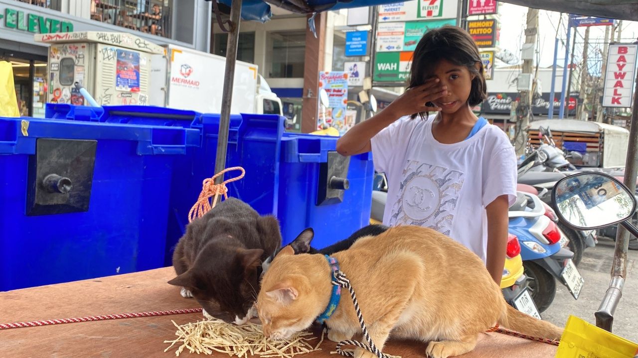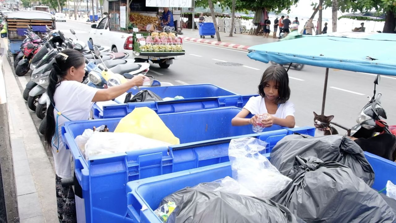ในระหว่างนั้นผู้สื่อข่าวได้มีโอกาสไปดูน้องฟ้าใสกับแม่เดินหาขวดพลาสติก กระป๋อง และลังกระดาษในถังขยะ ซึ่งในแต่ละวันน้องกับแม่จะขี่รถจักรยานยนต์พ่วงข้าง สภาพเก่าๆ ไม่มีไฟท้ายและไฟหน้าออกจากห้องแถวย่าน ต.นาจอมเทียน อ.บางละมุง จ.ชลบุรี มุ่งหน้ามายังถนนเลียบชายหาดเมืองพัทยา เพื่อเก็บของเก่า โดยบนรถจะมีแมว 3 ตัว มาด้วยตลอด