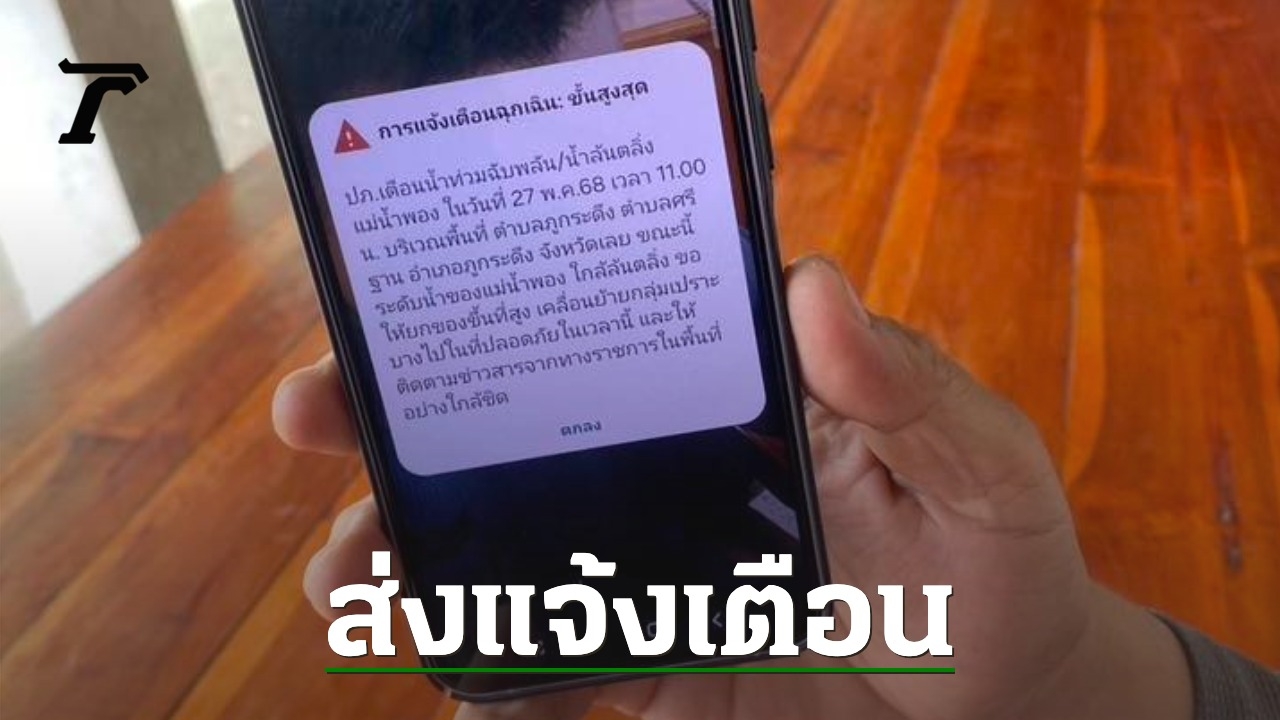 ปภ. ส่งแจ้งเตือน Cell Broadcast และ SMS ให้ประชาชนพื้นที่เสี่ยงริมแม่น้ำพอง ต.ภูกระดึง และ ต.ศรีฐาน อ.ภูกระดึง จ.เลย ยกของขึ้นที่สูง คาดแม่น้ำพองจ่อล้นตลิ่ง