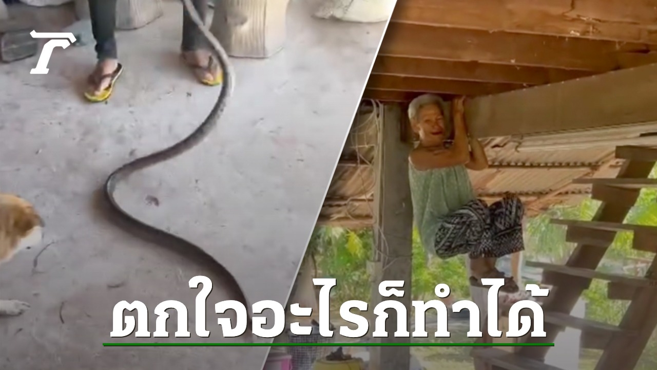 คุณยายวัย 80 กระโดดโหนขื่อ หลัง "งูสิง" ตัวยาวกำลังเลื้อยเข้าบ้าน ขณะที่โซเชียลขออนุญาตหัวเราะ พร้อมแห่แซว "โชว์ดึงข้อให้เด็กมันดู"