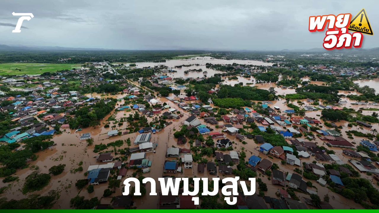หน่วยกู้ภัยแม่โจ้ เปิดภาพมุมสูงในตัว จ.น่าน ระดับน้ำยังสูงขึ้นเรื่อยๆ หลังเกิดฝนตกหนักต่อเนื่อง จากอิทธิพล "พายุวิภา"