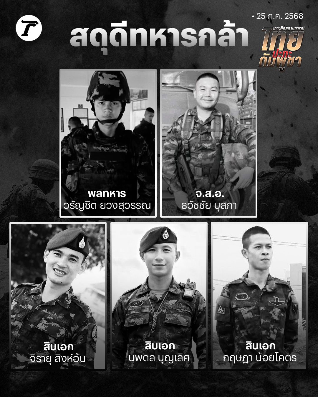 ขอสดุดีเหล่า "ทหารกล้า" พลีชีพปกป้องแผ่นดินไทย จากเหตุการณ์ปะทะพื้นที่ "ชายแดนไทย–กัมพูชา"