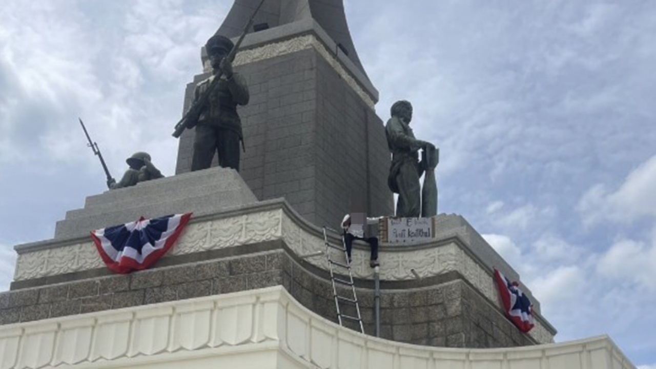 เกิดเหตุชายปีนขึ้นไปบนอนุสาวรีย์ชัยสมรภูมิ เจ้าหน้าที่ที่เกี่ยวข้องอยู่ระหว่างเจรจาเกลี้ยกล่อม ยังไม่ทราบสาเหตุและแรงจูงใจ