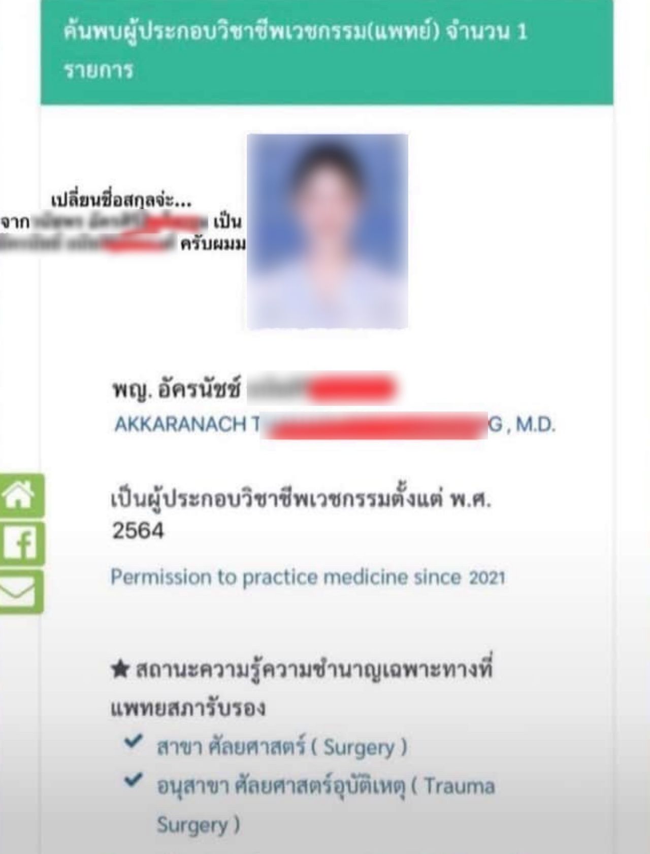 เพจดังแฉสนั่น หญิงสาวปลอมใบประกอบวิชาชีพแพทย์ โพสต์อ้างรักษาคนไข้-แพทยสภาเร่งตรวจสอบ ขณะที่ จ่าพิชิต ย้ำ หากเป็นหมอจริงต้องมีชื่อในเว็บแพทยสภา