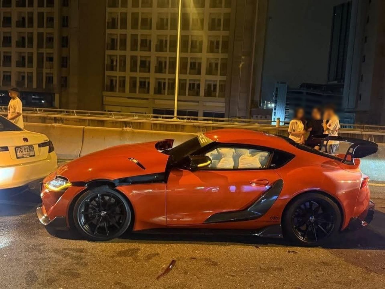 โดยมีรถยนต์ที่ได้รับความเสียหายทั้งหมดประมาณ 10 คัน อาทิ บีเอ็มดับบลิว สีขาว ทะเบียน กทม. ท้ายและด้านหน้ายุบ บีเอ็มดับบลิวสีเทา 112 ไอ ทะเบียน กทม. ท้ายยุบกันชนท้ายหลุด ฮอนด้า ซีวิค สีขาว ไม่ติดแผ่นป้ายทะเบียน กระจกหน้าแตก ด้านข้างขวายุบ ท้ายยุบ โตโยต้า จีอาร์ ซูปรา (Toyota GR Supra) สีส้ม ไม่ติดแผ่นป้ายทะเบียน ด้านหน้าเละล้อหน้าซ้ายหลุด