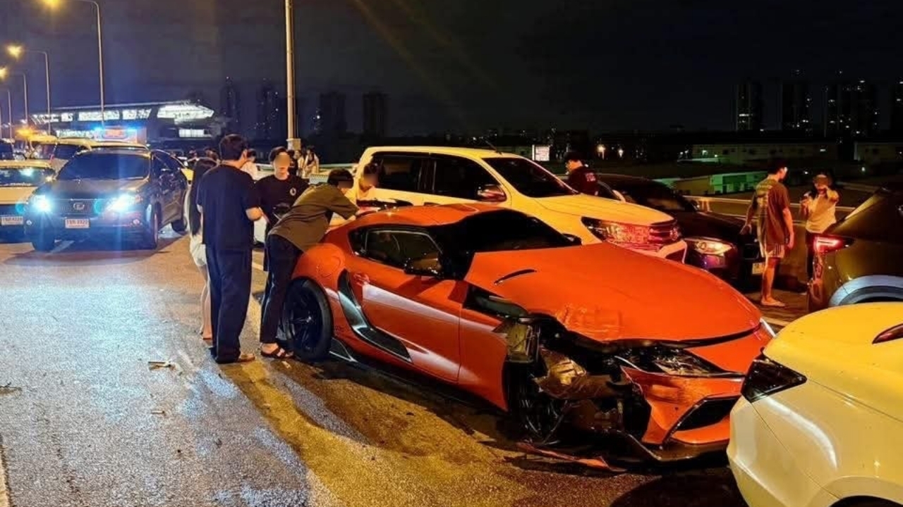วิจารณ์สนั่น ขับแข่งกันมา รถหรูแต่งซิ่งชนกันบนทางด่วนอุดรรัถยา (ทางด่วนสายบางปะอิน-ปากเกร็ด) พังเสียหายนับ 10 คัน ตำรวจเร่งสอบปากคำรอตรวจสอบกล้องวงจรปิด มีโทษหนักถึงขั้นถูกศาลสั่งริบรถ