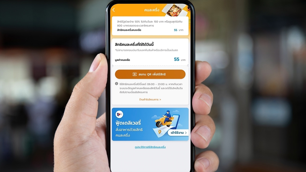 ในโครงการคนละครึ่งเฟส 5 การใช้บริการฟู้ดเดลิเวอรี่ก็ยังเป็นอีกหนึ่งทางเลือก โดยสามารถใช้ผ่านแอปพลิเคชัน ฟู้ดเดลิเวอรี่ ได้ เฉพาะร้านที่เข้าร่วมโครงการ ไม่รวมค่าจัดส่ง