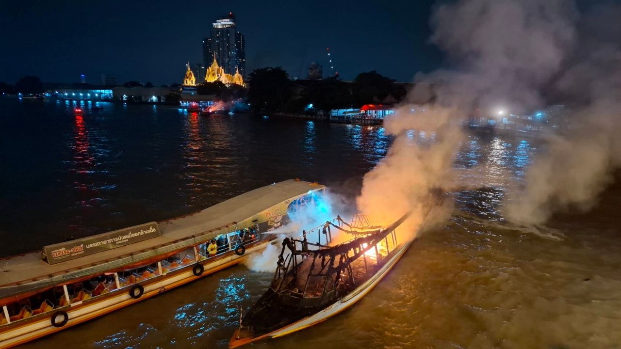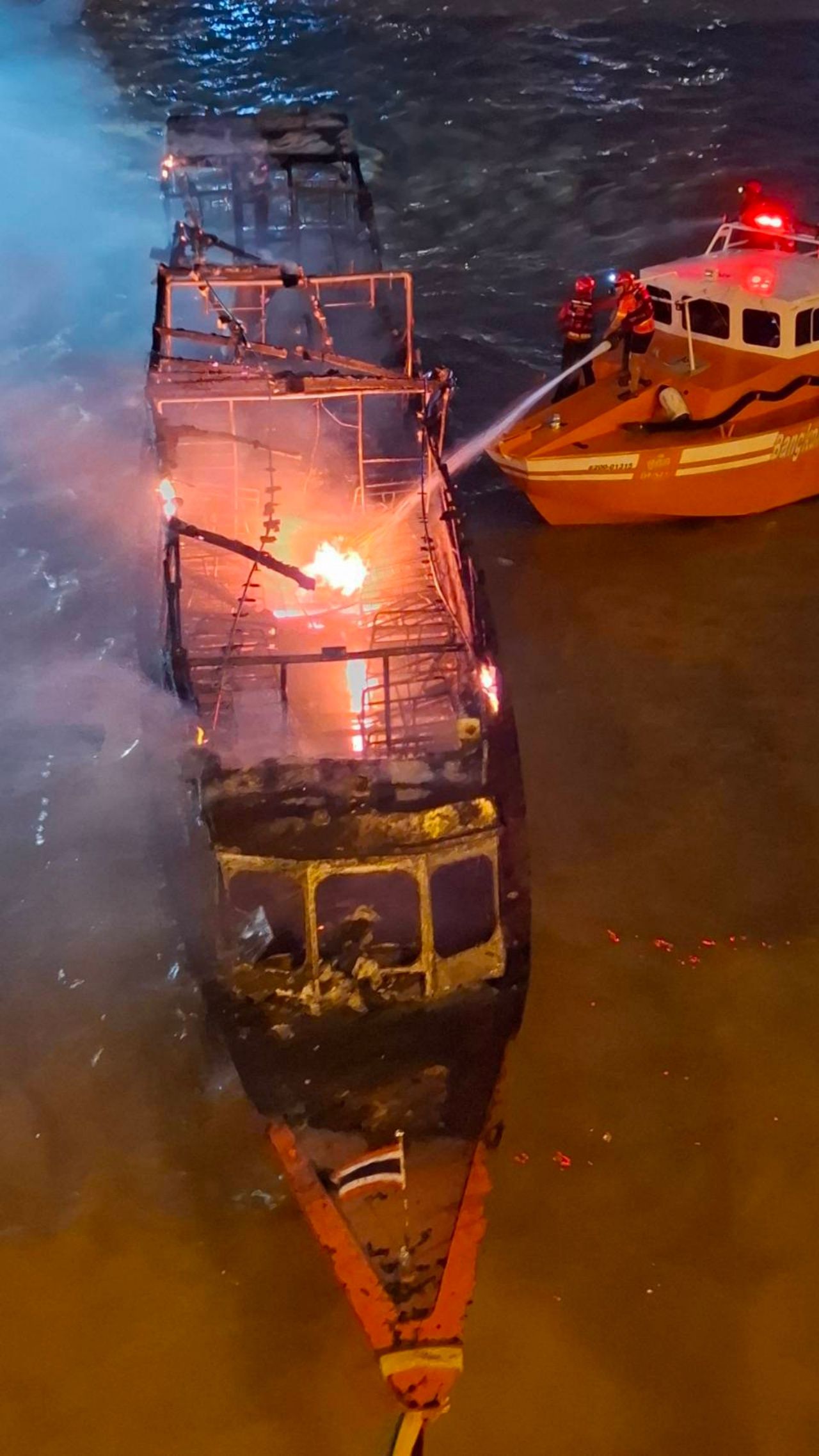 ขณะนี้ตัวเรือลอยออกมากลางแม่น้ำเจ้าพระยา เพื่อไม่ให้เกิดการลุกลามพื้นที่วัดราชสิงขร และเรือลำอื่น ทั้งนี้ ไม่มีผู้บาดเจ็บและเสียชีวิต หากมีความคืบหน้าจะรายงานให้ทราบต่อไป.
