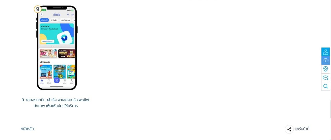 9. หากลงทะเบียนสำเร็จ จะแสดงการ์ด wallet ดังภาพ เพื่อให้สมัครใช้บริการ.