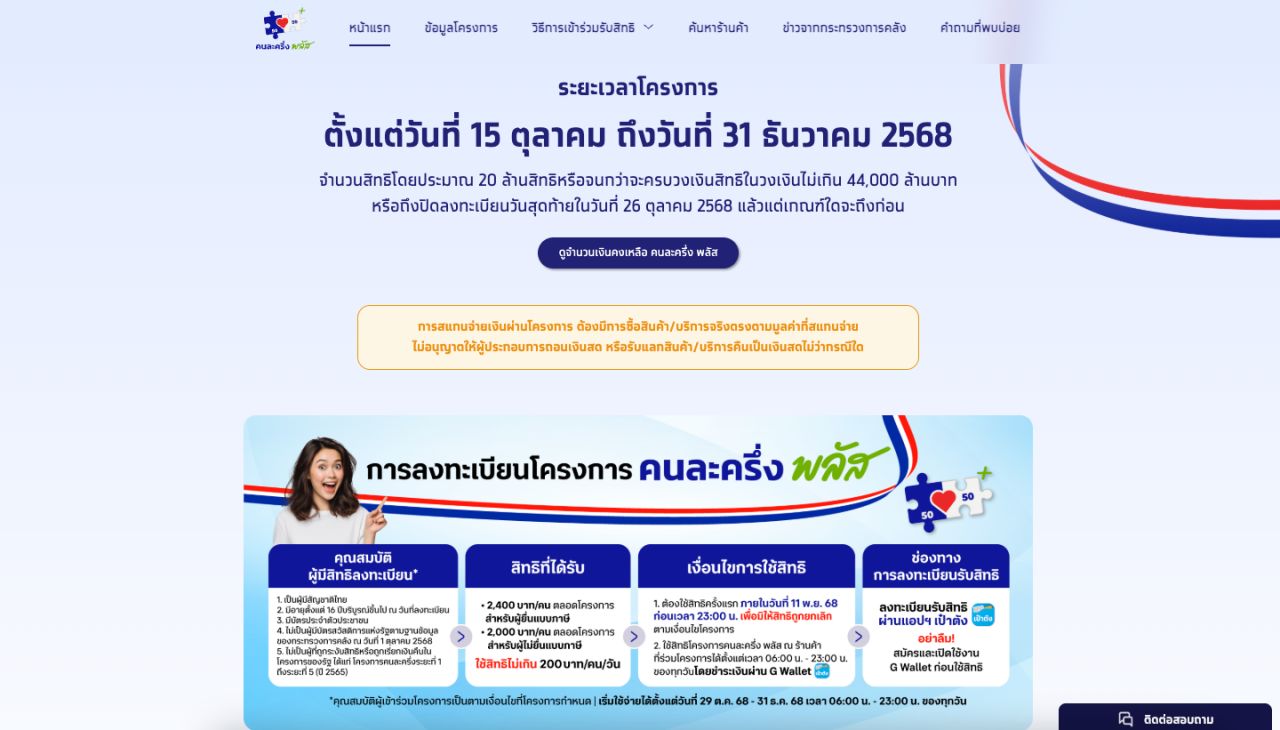 ข้อมูลลงทะเบียนโครงการ www.คนละครึ่งพลัส.com - (คลิกที่นี่)