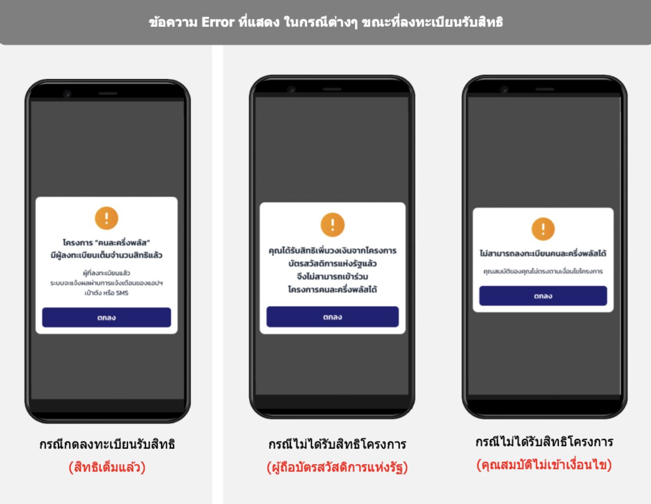 "ลงทะเบียนคนละครึ่งพลัสไม่ได้" จะขึ้นหน้าจออย่างไร