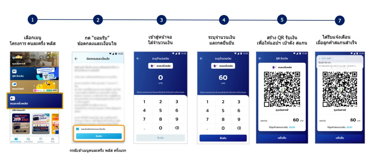 โดยร้านค้าที่มีคุณสมบัติเป็นไปตามเงื่อนไขที่โครงการฯ กำหนด และสนใจเข้าร่วมโครงการฯ สามารถลงทะเบียนเข้าร่วมโครงการฯ ได้ตั้งแต่วันนี้เป็นต้นไป จนถึงวันที่ 19 ธันวาคม 2568 โดยร้านค้าที่เคยเข้าร่วมโครงการคนละครึ่ง ระยะที่ 5 และมีคุณสมบัติตามที่โครงการฯ กำหนด จะต้องอัพเดตแอปพลิเคชัน “ถุงเงิน” ก่อน หากผ่านการตรวจสอบคุณสมบัติในแอปพลิเคชัน จะปรากฏปุ่มคนละครึ่งพลัส ให้กดยืนยันสิทธิเข้าร่วมโครงการฯ ได้