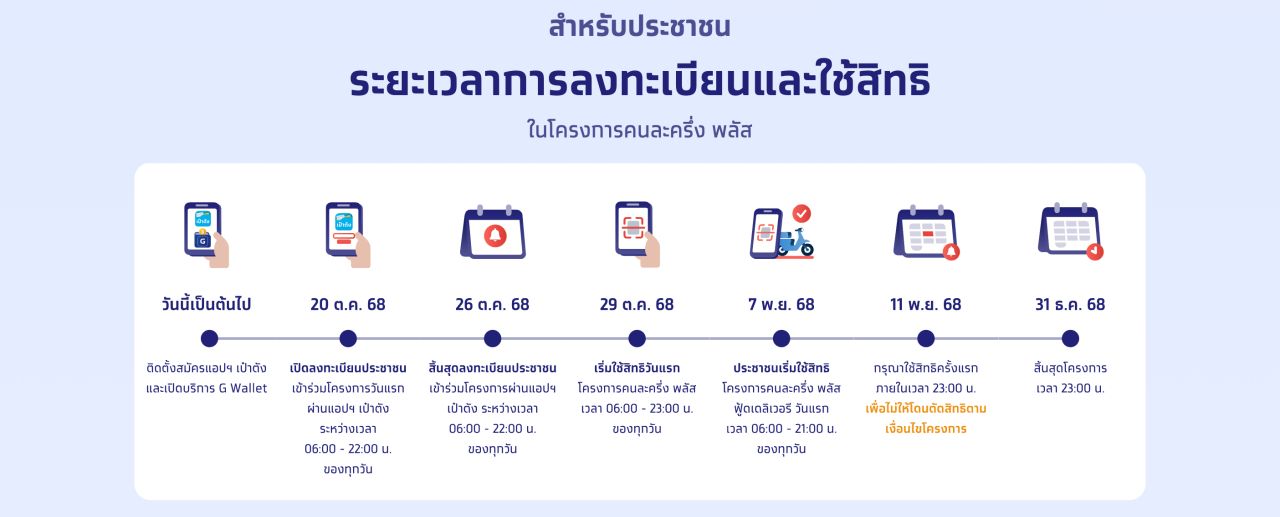 ไทม์ไลน์ "คนละครึ่งพลัส" ลงทะเบียนได้ถึงวันไหน ใช้สิทธิได้ถึงเมื่อไร
