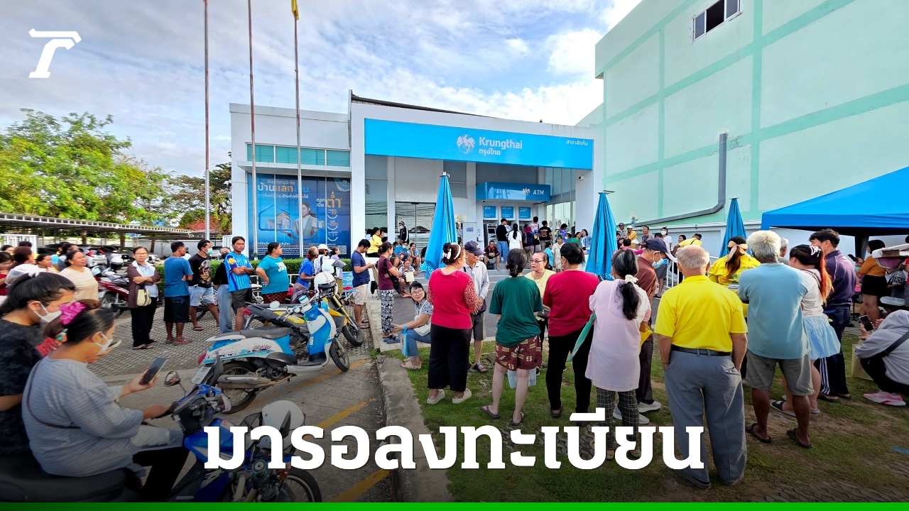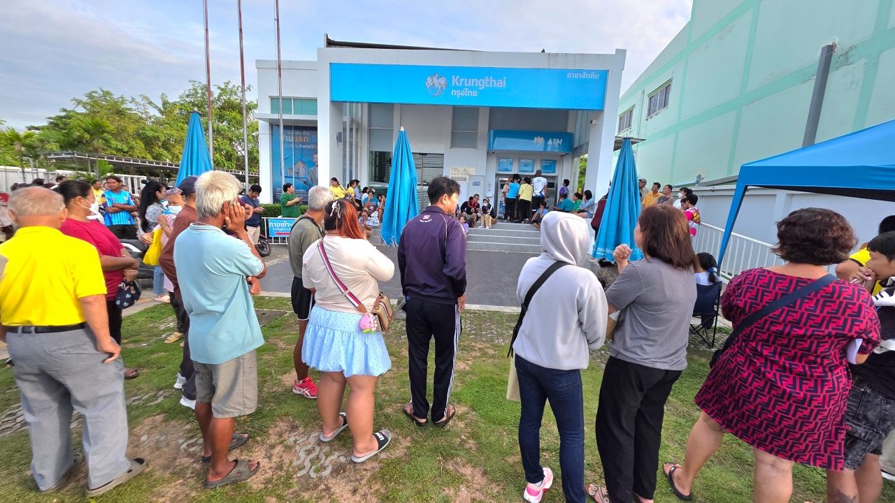 ชาวสัตหีบจำนวนมาก เดินทางมารอตั้งแต่ตี 5 เพื่อลงทะเบียน "คนละครึ่งพลัส" รับสิทธิวันแรกแน่นธนาคารกรุงไทย
