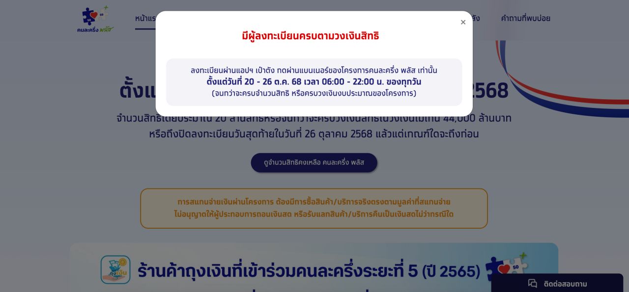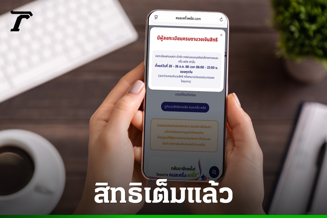 เว็บไซต์คนละครึ่งพลัส www.คนละครึ่งพลัส.com หลังเปิดให้ลงทะเบียนเพิ่ม 496,855 สิทธิ ล่าสุดสิทธิเต็มแล้ว