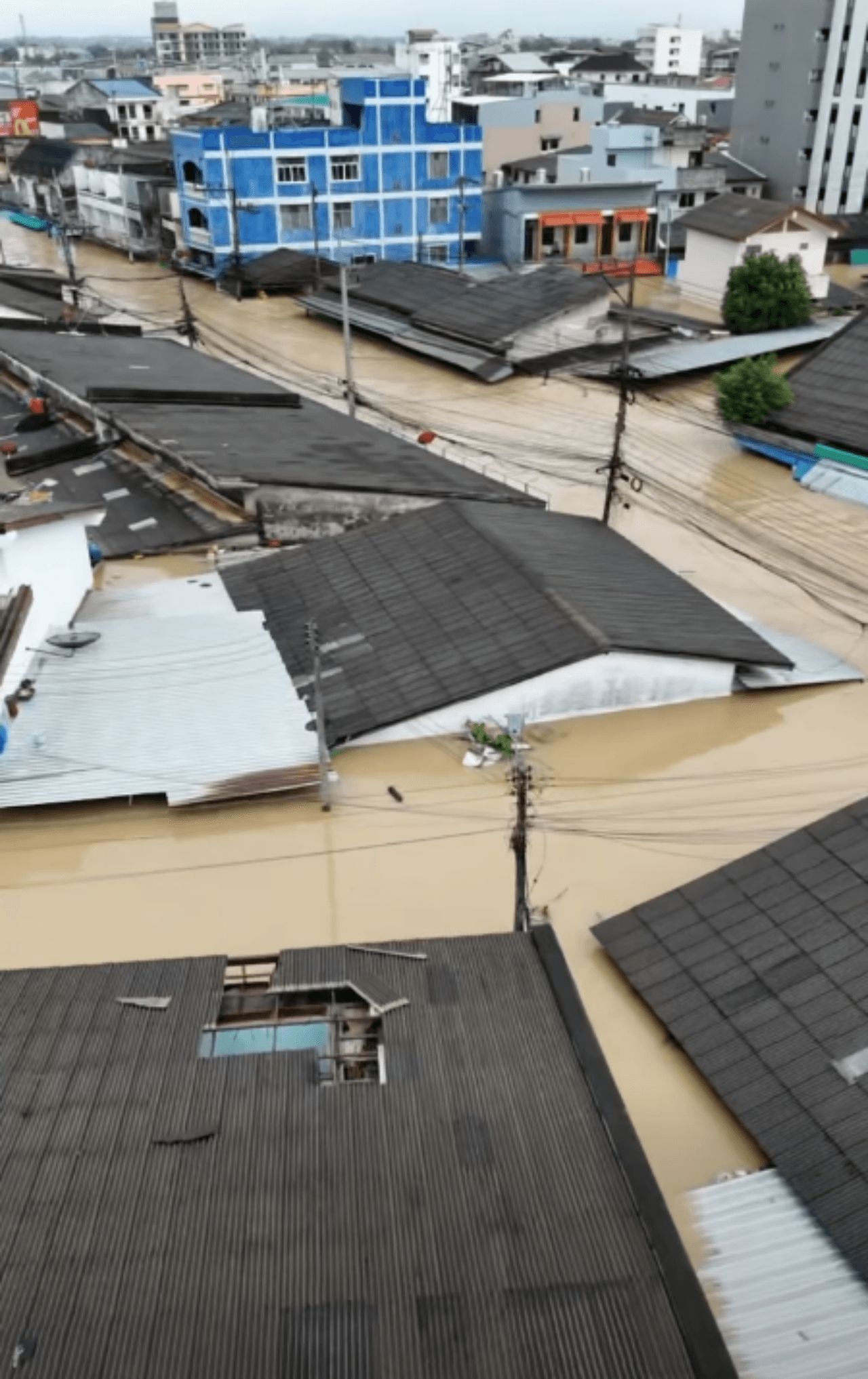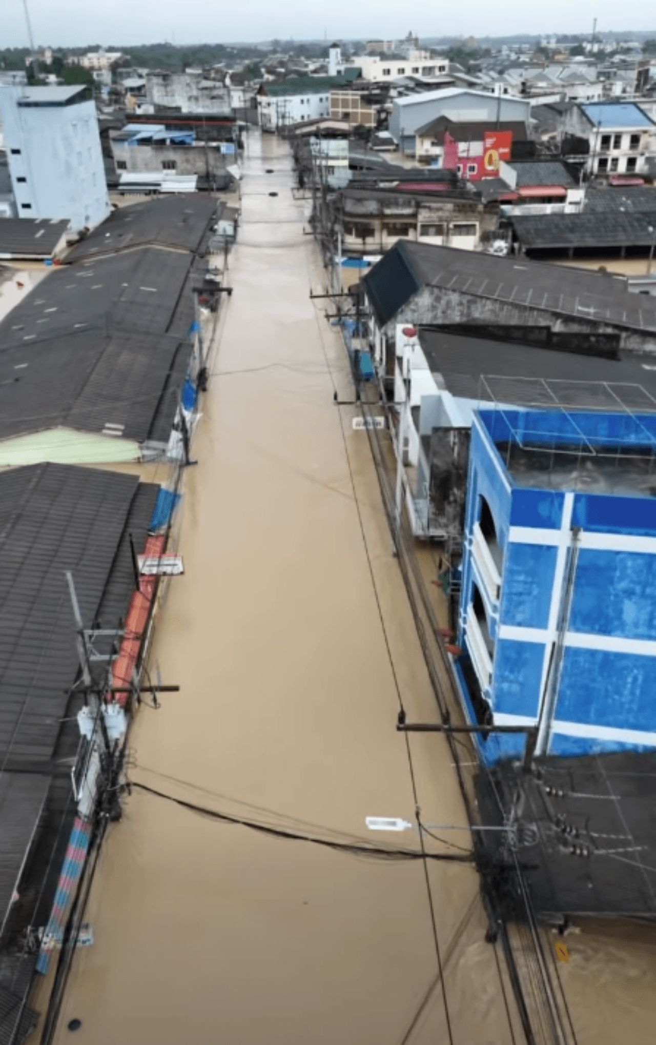 เปิดภาพมุมสูง “น้ำท่วมหาดใหญ่” ย่านศุภสารรังสรรค์-ช่องเขา, ชุมชนทุ่งเสา ระดับน้ำยังสูง รถยังไม่สามารถสัญจรได้
