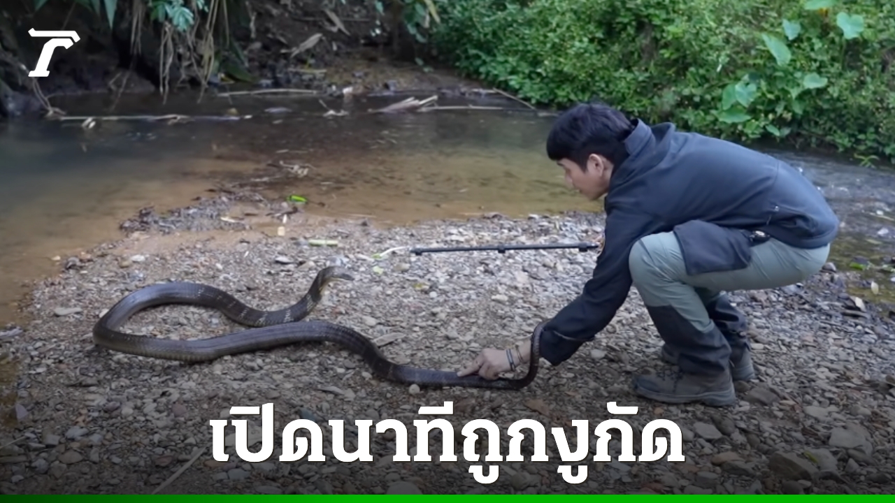เปิดคลิปนาที "นิค อสรพิษวิทยา" ช่วยจับ "งูจงอาง 3 เมตร" เพียงเสี้ยววินาทีถูกงูบิดตัวกัดจมเขี้ยว เห็นพิษสีส้มซึมออกชัด