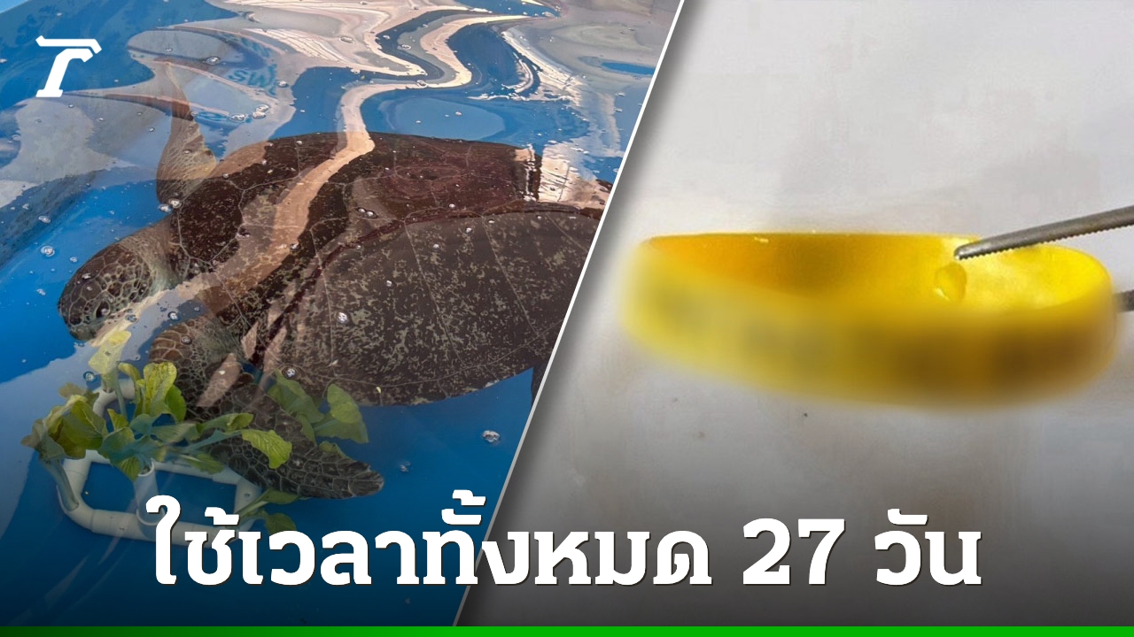 โดยสัตวแพทย์จึงได้ทำการประเมินสุขภาพอย่างต่อเนื่องทุกวัน จนกระทั่งวันที่ 18 ธ.ค. 2568 พบว่าเต่าทะเลขับอุจจาระออกมาเป็นสายรัดข้อมือสีเหลืองพร้อมใบตอง ซึ่งเป็นพืชที่ไม่สามารถย่อยในทางเดินอาหารได้ รวมระยะเวลาตั้งแต่วันที่เต่าทะเลกลืนสายรัดข้อมือจนขับออกมาทางอุจจาระใช้เวลาทั้งหมด 27 วัน โดยสัตวแพทย์ได้พิจารณาติดตามและประเมินอาการอย่างต่อเนื่อง และติดต่อประสานงานกับเจ้าหน้าที่อุทยานฯ เพื่อวางแผนปล่อยเต่าทะเลคืนสู่ธรรมชาติในลำดับต่อไป พร้อมข้อเสนอแนะแนวทางการจัดการกิจกรรมการท่องเที่ยวทางน้ำให้เหมาะสมโดยไม่ควรให้อาหารที่ไม่เป็นอาหารตามธรรมชาติและสิ่งแปลกปลอมให้กับเต่าทะเล.