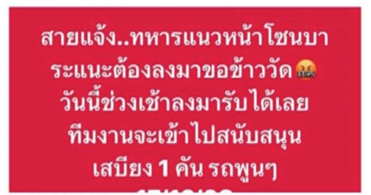 จากกรณีผู้ใช้เฟซบุ๊กรายหนึ่งได้โพสต์ข้อความระบุว่า “สายแจ้ง..ทหารแนวหน้าโซนบาระแนะต้องลงมาขอข้าววัด วันนี้ช่วงเช้าลงมารับได้เลย ทีมงานจะเข้าไปสนับสนุนเสบียง 1 คันรถพูนๆ 17/12/68” จากนั้นได้มีการแชร์ต่อในโซเชียล มีคนเข้าไปคอมเมนต์เห็นใจทหารแนวหน้า ขณะที่บางคนอยากให้มีการตรวจสอบ เพราะหากไม่ใช่เรื่องจริงจะทำให้เกิดผลเสียกับกองทัพ