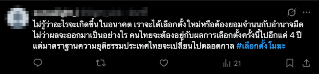 ประเด็นนี้ถูกพูดถึงอย่างมากในโลกโซเชียล จนเกิดกระแส #เลือกตั้งโมฆะ พุ่งติดเทรนด์ใน X และในโซเชียล ส่วนใหญ่ออกมาแสดงความคิดเห็น อาทิ ไม่รู้ว่าอะไรจะเกิดขึ้นในอนาคต เราจะได้เลือกตั้งใหม่หรือต้องยอมจำนนกับอำนาจมืด ไม่ว่าผลจะออกมาเป็นอย่างไร คนไทยจะต้องอยู่กับผลการเลือกตั้งครั้งนี้ไปอีกแค่ 4 ปี แต่มาตรฐานความยุติธรรมประเทศไทยจะเปลี่ยนไปตลอดกาล, คือ track ได้ก็จะสามารถสร้าง data ขนาดใหญ่ได้ว่าใครที่เลือกอะไรแล้วอยู่ตรงไหน คนไหนซื้อเสียงได้หรือไม่ได้ เอาแค่เรื่องง่ายๆ คือได้ประหยัดเงินซื้อพวกที่ไม่ยอมกาให้ แถมรอบนี้ยังตามไปขู่มันได้อีกว่ารู้นะรอบนี้มึงไม่กาให้กู, ใครเข้าถึงข้อมูลจาก Barcode + Ecosystem นี้ ก็สบายไปอีก 2 เลือกตั้ง มาช่วยกันหยุดสิ่งนี้นะครับ, เลิกพูดเรื่องมีทุจริตแต่นับใหม่ก็คงไม่เปลี่ยนมากเถอะ แม่งสะท้อนการทุจริตแบบภาพกว้างครั้งใหญ่ขนาดนี้ นี่แค่ที่เห็นๆยังเยอะขนาดนี้ ไอที่ยังไม่รู้อีกเท่าไร ฯลฯ