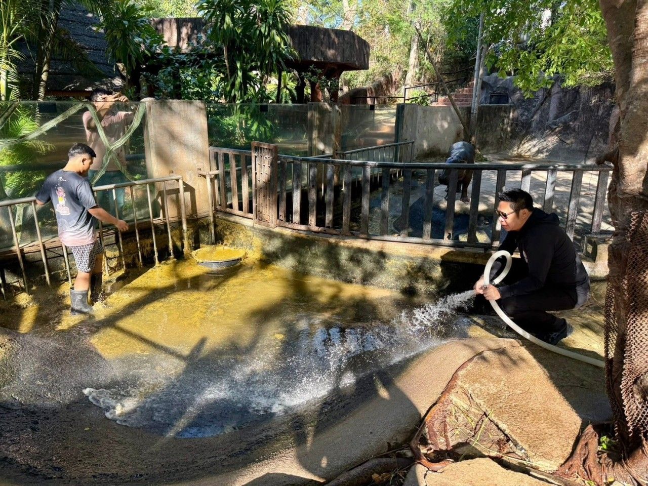 - การจัดสภาพแวดล้อมให้มีดิน โคลน และพืชน้ำ เป็นการออกแบบตามหลักชีววิทยาเพื่อให้สัตว์ได้แสดงพฤติกรรมตามสัญชาตญาณและช่วยรักษาสุขภาพผิวหนัง ไม่ได้เกิดจากการปล่อยปละละเลยแต่อย่างใด