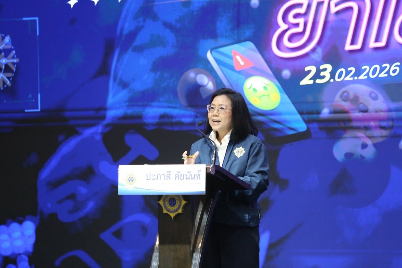 วันที่ 23 ก.พ. 69 ตามนโยบายการทำงานเชิงรุกของ พ.ต.ต. สุริยา สิงหกมล เลขาธิการ ป.ป.ส. ที่ให้ความสำคัญกับการปกป้องเด็กและเยาวชนจากภัยยาเสพติดบนโลกออนไลน์ เดินหน้าจัดกิจกรรมสร้างการรับรู้ครั้งสำคัญภายใต้หัวข้อ เปิดโลกคำแสลงยาเสพติด ณ สำนักงาน ป.ป.ส. โดยผนึกกำลังภาคีเครือข่าย บูรณาการความร่วมมือกับสถาบันการศึกษา ภาคประชาสังคม และผู้เชี่ยวชาญจากหลากหลายสาขา เพื่อร่วมกันตีแผ่กลยุทธ์ของขบวนการค้ายาเสพติด ที่หันมาใช้ อิโมจิและคำแสลง เป็นรหัสลับเพื่อหลบเลี่ยงการตรวจจับของระบบอัตโนมัติ (AI) และพุ่งเป้าเข้าถึงกลุ่มเด็กและเยาวชนได้ง่ายยิ่งขึ้น