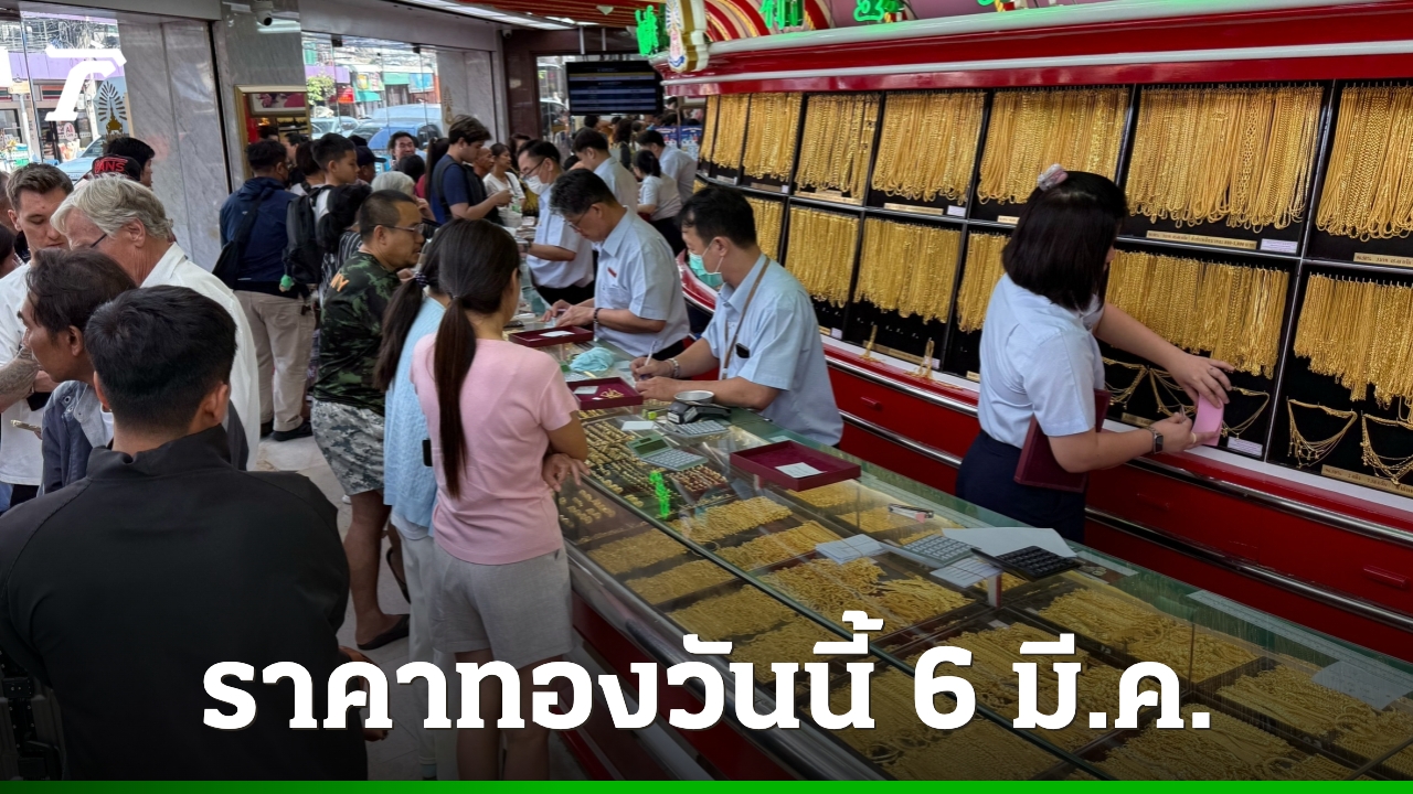 วันที่ 6 มีนาคม 2569 สมาคมค้าทองคำ รายงานว่า ราคาทองไทยวันนี้ ครั้งที่ 1 เมื่อเวลา 9.01 น. พบไม่เปลี่ยนแปลง ส่งผลให้ “ราคาทองคำแท่ง” รับซื้อบาทละ 76,950.00 บาท ขายออกบาทละ 77,150.00 บาท ส่วน “ราคาทองรูปพรรณ” รับซื้อบาทละ 75,405.84 บาท ขายออกบาทละ 77,950.00 บาท เช็กราคาทองคำวันนี้ ดังนี้