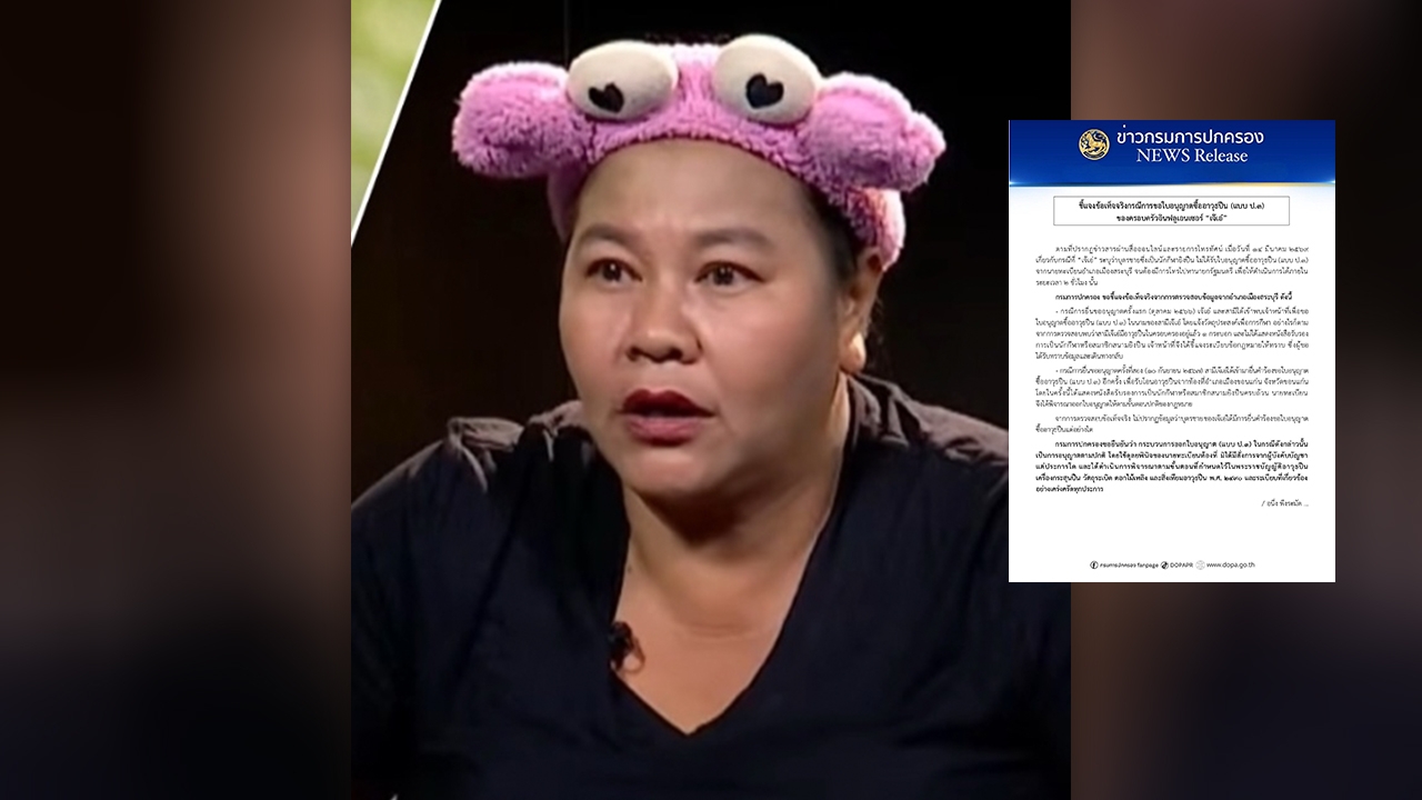กรมการปกครอง ชี้แจงแล้ว ปม “เจ๊เอ๋” ขอใบอนุญาตซื้อปืน ยืนยันไร้คำสั่งนายกฯ หรือจากผู้บังคับบัญชาแต่ประการใด ชี้การกล่าวอ้างใครในลักษณะใส่ความ มีความผิดตามกฎหมาย โทษสูงสุดทั้งจำทั้งปรับ