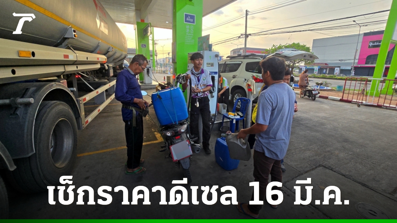 ราคาน้ำมันวันนี้ 16 มีนาคม 2569 ตรวจสอบ “ราคาน้ำมันดีเซล” แต่ละปั๊มลิตรละเท่าไร ขณะที่ ราคาน้ำมันดิบตลาดโลกพุ่งขึ้นอย่างต่อเนื่อง