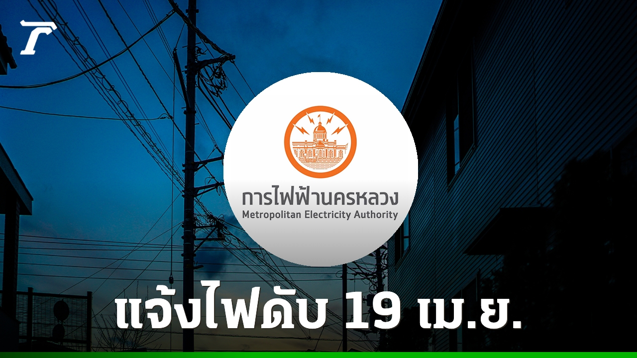 เช็กเลยที่ไหนบ้าง "การไฟฟ้านครหลวง" แจ้งไฟฟ้าดับในวันที่ 19 เมษายน 2569 พื้นที่กรุงเทพฯ-นนทบุรี-สมุทรปราการ