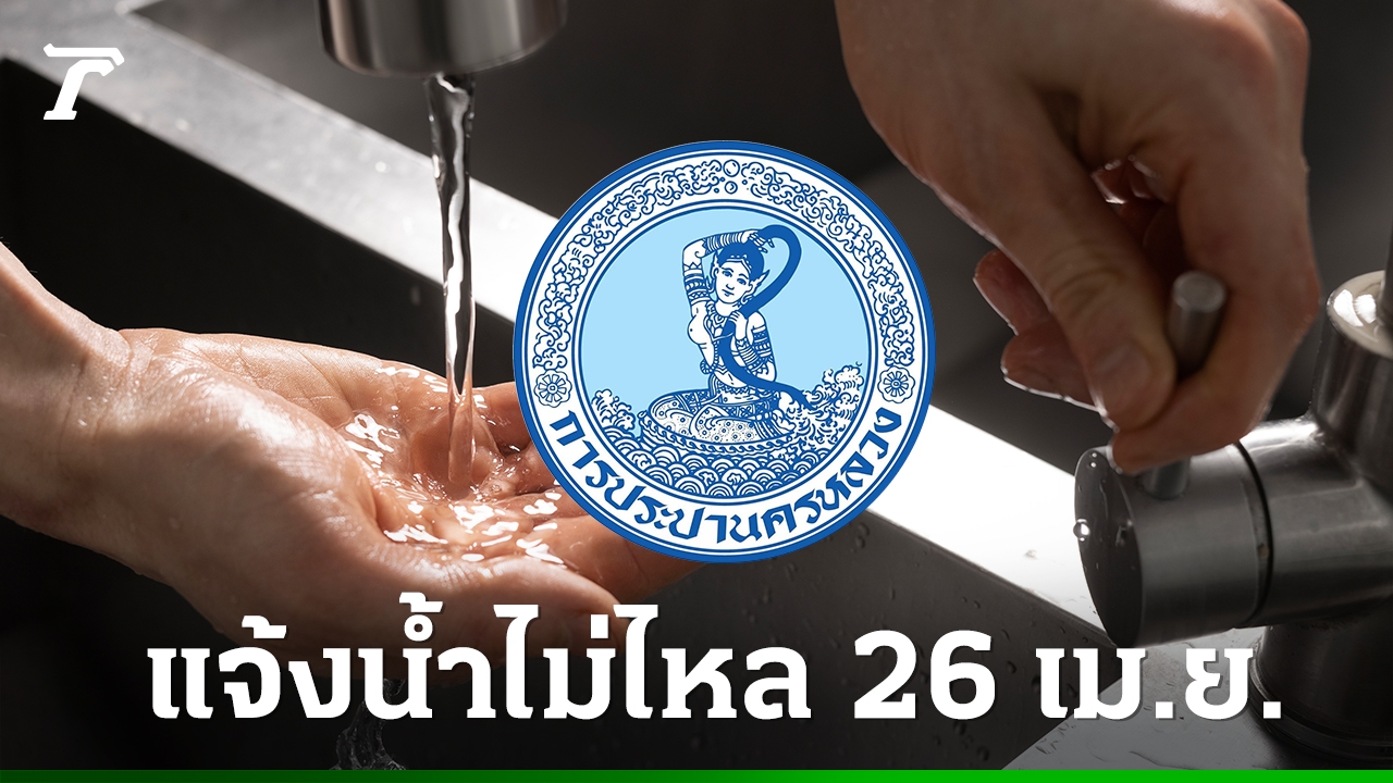 การประปานครหลวง (กปน.) แจ้งพื้นที่ "น้ำประปาไม่ไหล-น้ำประปาไหลอ่อน" วันนี้ 26 เมษายน 2569 ในกรุงเทพฯ นนทบุรี และสมุทรปราการ เช็กเลยกระทบที่ไหนบ้าง