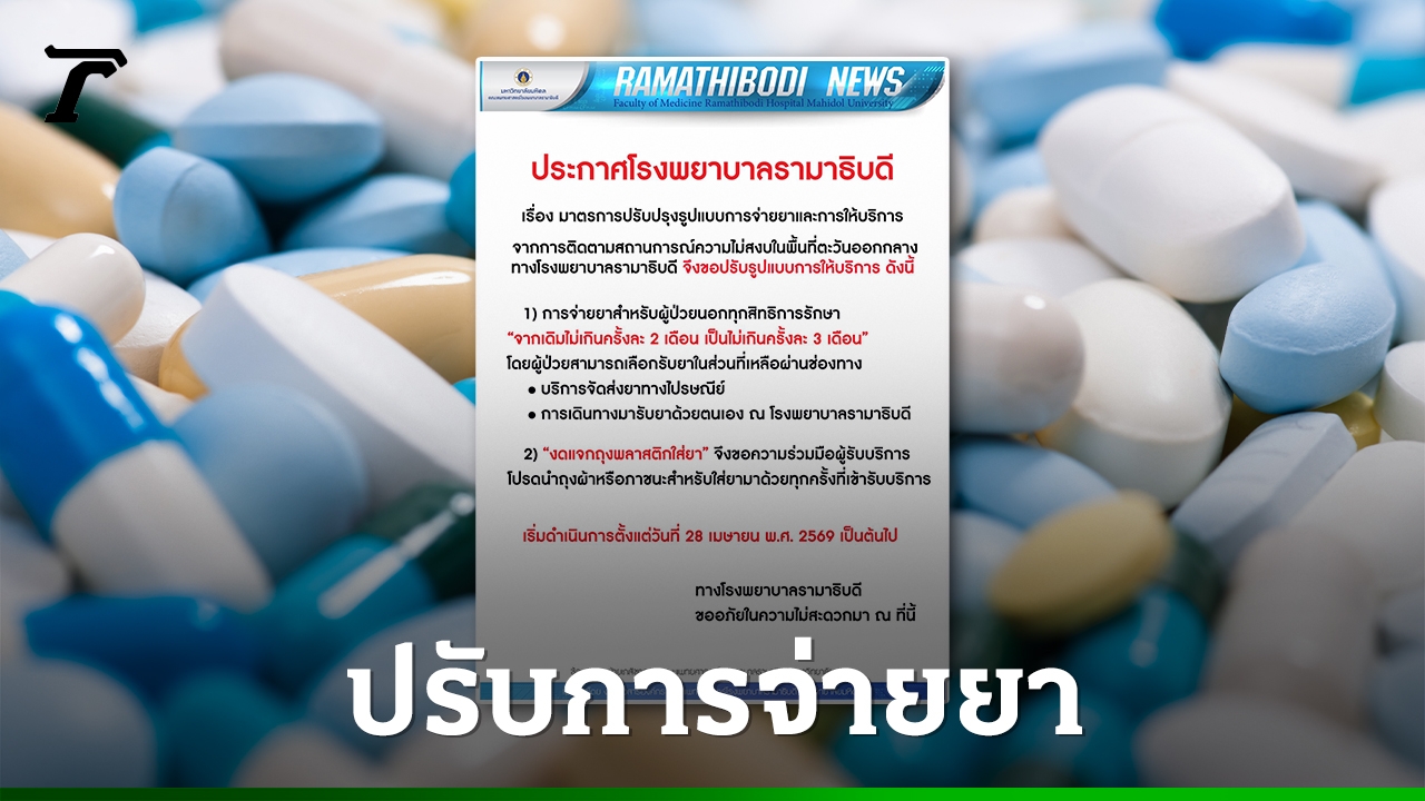 วันที่ 26 เมษายน 2569 โรงพยาบาลรามาธิบดี ประกาศเรื่อง "มาตรการปรับปรุงรูปแบบการจ่ายยาและการให้บริการ" โดยระบุว่า จากการติดตามสถานการณ์ความไม่สงบในพื้นที่ตะวันออกกลาง ทางโรงพยาบาลรามาธิบดี จึงขอปรับรูปแบบการให้บริการ ดังนี้