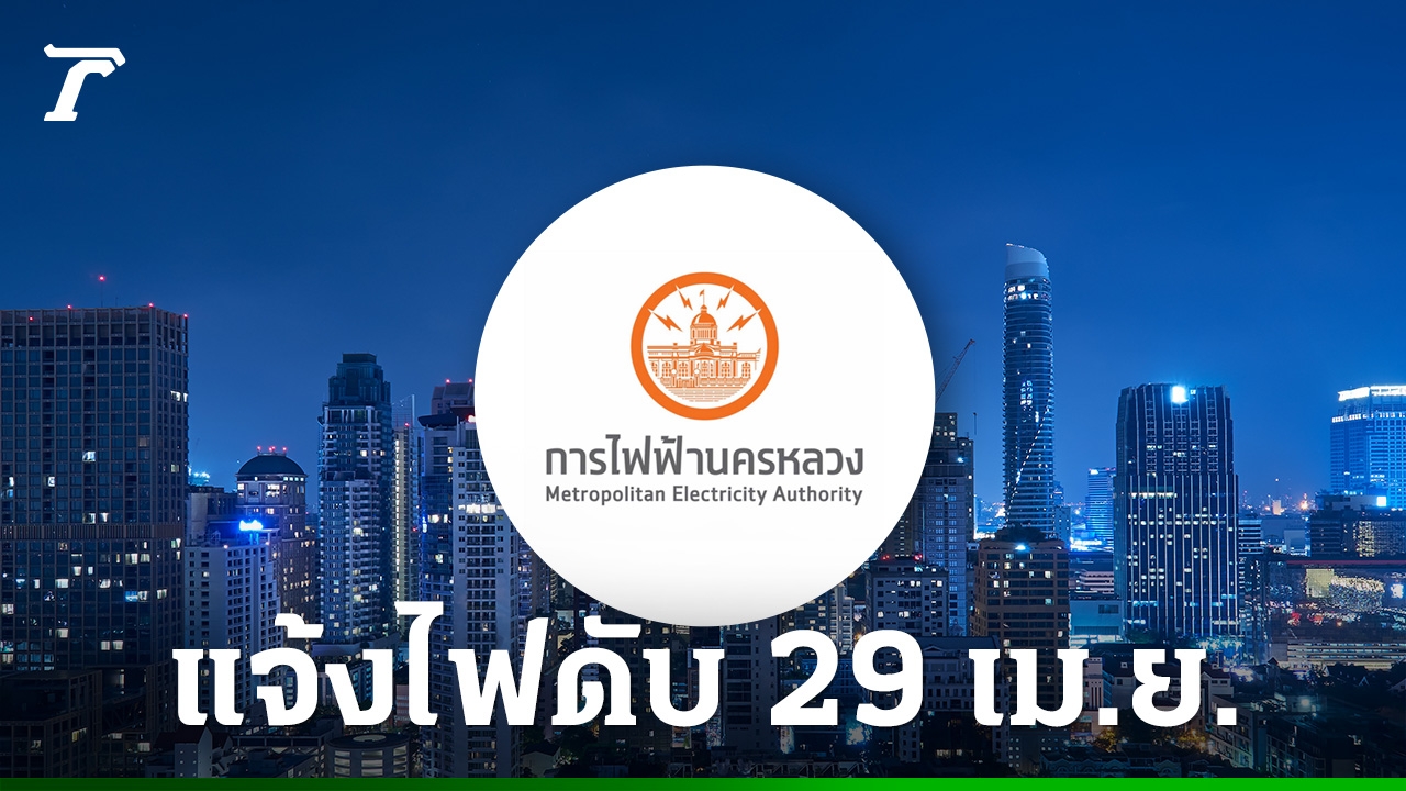แจ้งไฟดับ 29 เมษายน 2569 พื้นที่กรุงเทพฯ