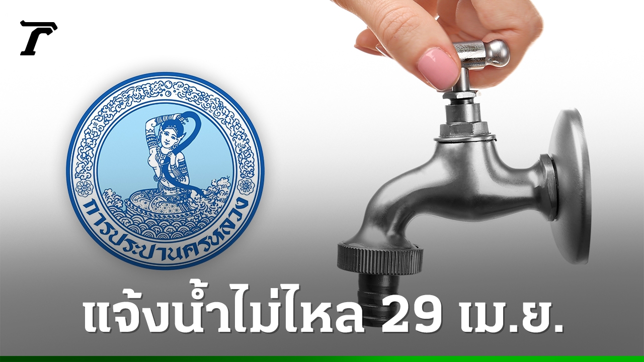 การประปานครหลวง (กปน.) แจ้งพื้นที่ "น้ำประปาไม่ไหล-น้ำประปาไหลอ่อน" วันนี้ 29 เมษายน 2569 ในกรุงเทพฯ และสมุทรปราการ เช็กเลยกระทบที่ไหนบ้าง