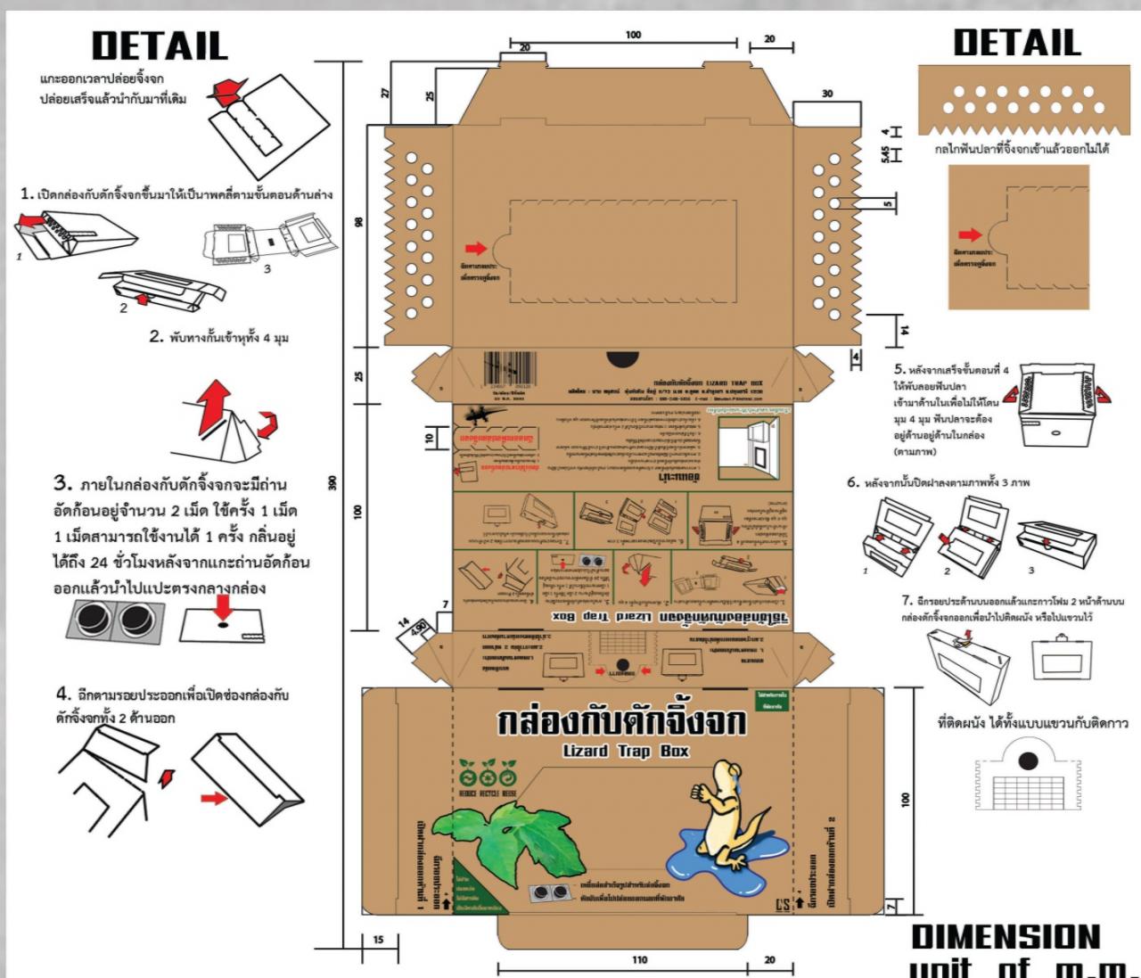 หมดปัญหาจิ้งจกรบกวน ปล่อยมูล เปื้อนติดพื้น ติดเสื้อผ้า บางคนกลัวจิ้งจกมากๆ หมดปัญหาด้วย กล่องดักจิ้งจก ที่ทำจากกระดาษ ฝีมือการสร้างสรรค์ และออกไอเดียโดย ดนุสรณ์ พุ่มทับทิม นศ.ชั้นปีที่ 4 สาขาวิชาออกแบบผลิตภัณฑ์ มทร.ธัญบุรี...