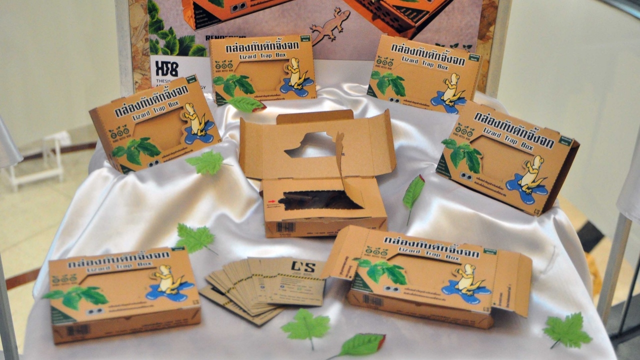"มีการนำกล่องดักจิ้งจกไปทดลองใช้กับกลุ่มผู้พักอาศัยในชุมชนเย็นฉ่ำ ตำบลคูคต อำเภอลำลูกกา จังหวัดปทุมธานี โดยสามารถล่อจิ้งจกได้จริง โดยใช้กลิ่นต่อมน้ำมันใบเปล้าตองแตกที่มีฟีโรโมนที่จิ้งจกชอบ เพื่อเรียกให้จิ้งจกออกมา และรูปแบบของกล่องจิ้งจก จำนวน 1 กล่อง ภายใต้กรอบแนวคิด คือ หน้าที่ใช้สอย ความปลอดภัย ความแข็งแรง ความสะดวกสบายในการใช้ ความสวยงาม ราคาวัสดุการผลิต และการขนส่งด้วยรูปแบบกล่องดักจิ้งจกเป็นกระดาษคราฟท์ ที่สามารถ ช่วยลดภาวะมลพิษและอนุรักษ์โลก และการนำ 3R Reduce-Reuse-Recycle มาใช้เพื่อลดโลกร้อน กล่องกับดักจิ้งจกยังมีกลไกที่แน่นหนา และรูปแบบกล่องหรือสีสามารถเข้ากับภายในบ้านพักอาศัยได้อย่างลงตัว และปลอดภัย ในขณะนี้ได้อยู่ในขั้นของการดำเนินการจดลิขสิทธิ์ โดยราคาขายกล่องละ 50 บาท /กล่อง 1 กล่องสามารถใช้ได้ 2 ครั้ง ผู้สนใจสอบถามรายละเอียด โทร.081-2485156" น้องบอล เจ้าของไอเดียกล่าวทิ้งท้าย
