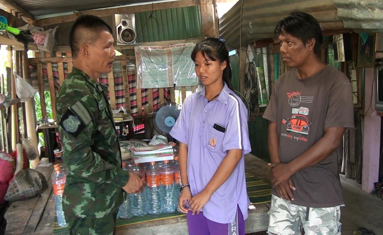 จากนั้นผู้สื่อข่าวได้เดินทางไปบ้านเลขที่ 9809 ม.3 ต.ดงคอน อ.สรรคบุรี จ.ชัยนาท พร้อมกับ จ.ส.อ.ธนโชติ แสงเดือน จนท.ร้อย รส.ที่ 3 หมวด รส.ที่ 2 ตัวแทนของเขตพื้นที่รับผิดชอบ อ.สรรคบุรี และ อ.สรรพยา มาทำการมอบน้ำดื่ม ข้าวสารอาหารแห้ง อุปกรณ์การเรียน และเงินจำนวน 1,000 บาท ที่ได้รับบริจาคมาจากหน่วยงานราชการและห้างร้านภายใน จ.ชัยนาท มามอบให้แก่น้องเอิร์น