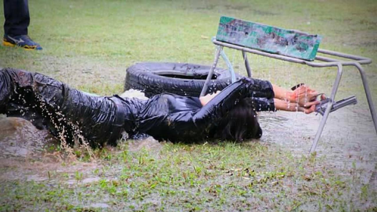 "ตอนจะจบ ม.6 มีเปิดรับสมัครสอบ พยายามทุกอย่างจนกระทั่งสอบติด หลังเข้าไปก็ฝึกและเรียนด้วยกันกับเพื่อนผู้ชาย แรกๆ ทำตัวไม่ถูกค่ะ วางตัวลำบาก รู้สึกกดดันมากพอสมควร ไม่อยากทำอะไรให้โรงเรียนผิดหวังที่รับเรามา โดยเฉพาะเรื่องชู้สาว...คือเลี่ยงมากที่สุด เพราะว่าการที่ผู้หญิงมาเรียนในโรงเรียนชายล้วน มันเป็นข้อครหาอยู่แล้วว่าเข้ามามีเรื่องชู้สาวแน่ๆ แล้วก็ฝึกไม่ไหวแน่ๆ เดี๋ยวก็ลาออก...เลยทำให้เราต้องใช้ความอดทนสูงมาก กว่าจะผ่านแต่ละหลักสูตรมาจนกระทั่งจบปี 4"