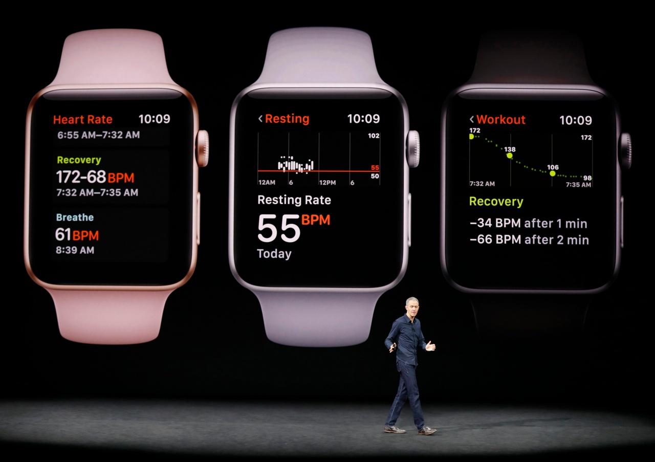 ผลิตภัณฑ์แรกที่เปิดตัวคือ Apple Watch ซึ่งตอนนี้มียอดขายทั่วโลกขึ้นมาเป็นอันดับ 1 แล้ว แซงหน้ายี่ห้อดังอย่าง Rolex สำหรับฟีเจอร์ที่น่าสนใจ ของ Apple Watch นั้น Heart Rate Monitor เป็นฟีเจอร์ที่หลายคนให้ความสำคัญ ซึ่งถือเป็นเครื่องมือที่วัดอัตราการเต้นของหัวใจที่ดี และแม่นยำที่สุด ประเมินการเต้นหัวใจตลอดเวลา ซึ่งจะรวมไปถึงการวิเคราะห์โรคที่เกี่ยวกับหัวใจได้ด้วย