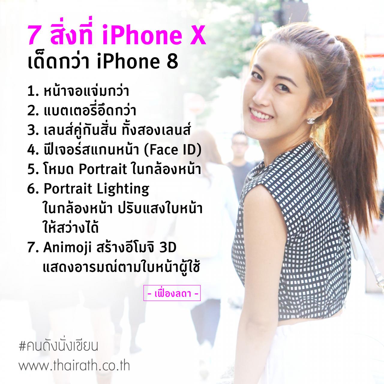 ทีนี้หลายคนก็งง อ้าว... iPhone 9 หายไปไหน 55 อันนี้เฟื่องตอบไม่ได้นะคะ แต่ที่พอจะช่วยไขข้อของใจได้ คือ iPhone 8 กับ iPhone X แตกต่างกันอย่างไร เผื่อช่วยประกอบการตัดสินใจค่ะ สรุปแยกให้ดูแบบนี้ละกันค่ะ