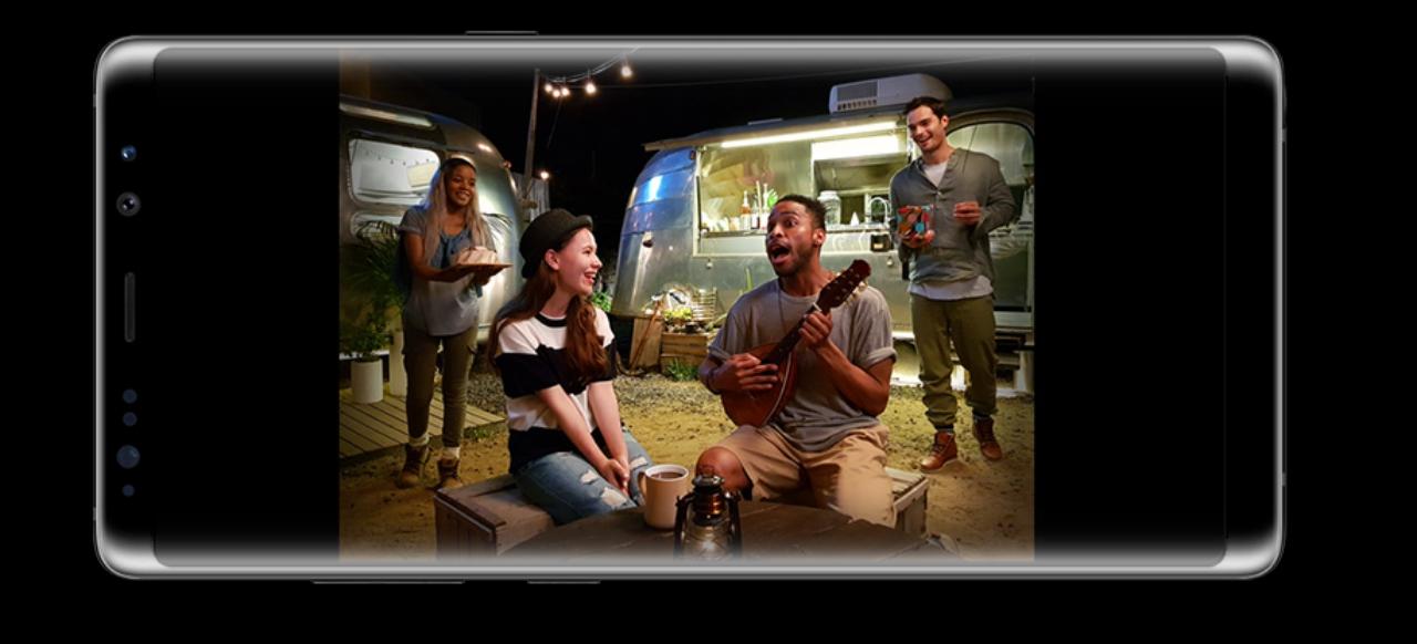 คราวนี้มาเริ่มที่ฝั่งซัมซุงกันบ้าง โน้ต 8 มาพร้อมกับกล้องคู่ (Dual-Camera) ความละเอียด 12 - 12 ล้านพิกเซล สามารถซูมได้แบบ Digital Zoom ระดับ 10x พร้อมฟังก์ชัน Live Focus ที่สามารถถ่ายภาพแบบ หน้าชัด-หลังเบลอ ได้ทันที มีจุดเด่นด้วย 4 Dual ได้แก่