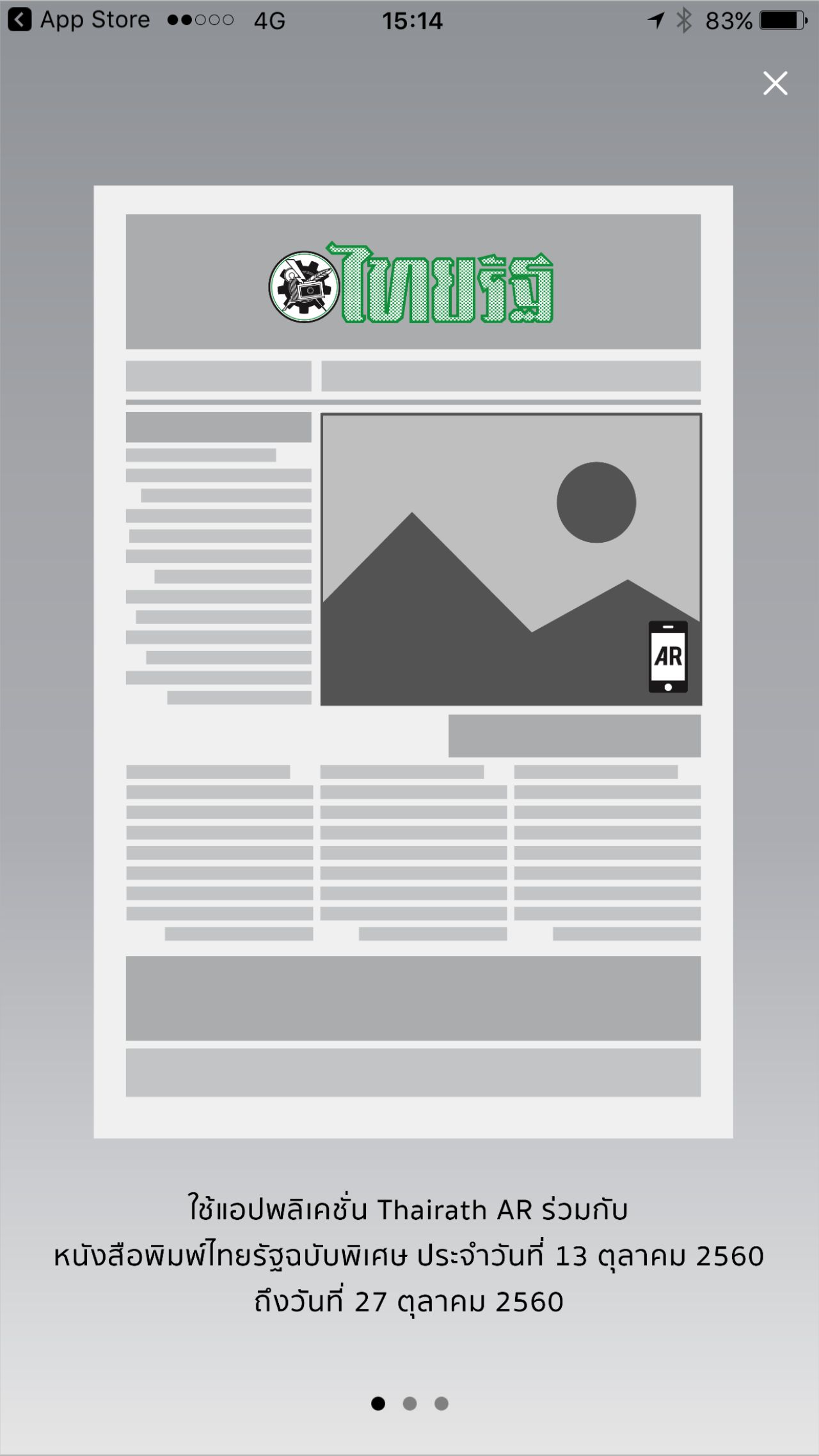 1. แอปพลิเคชัน Thairath AR พร้อมให้ทุกท่านได้ดาวน์โหลดได้ตั้งแต่วันที่ 9 ตุลาคม 2560 เป็นต้นไป (หากใครเคยดาวน์โหลดมาแล้วในฉบับ 100 วันแห่งความอาลัยพระบาทสมเด็จพระปรมินทรมหาภูมิพลอดุลยเดช เราขอแนะนำให้ท่านลบแอปฯเก่าทิ้ง แล้วโหลดใหม่)