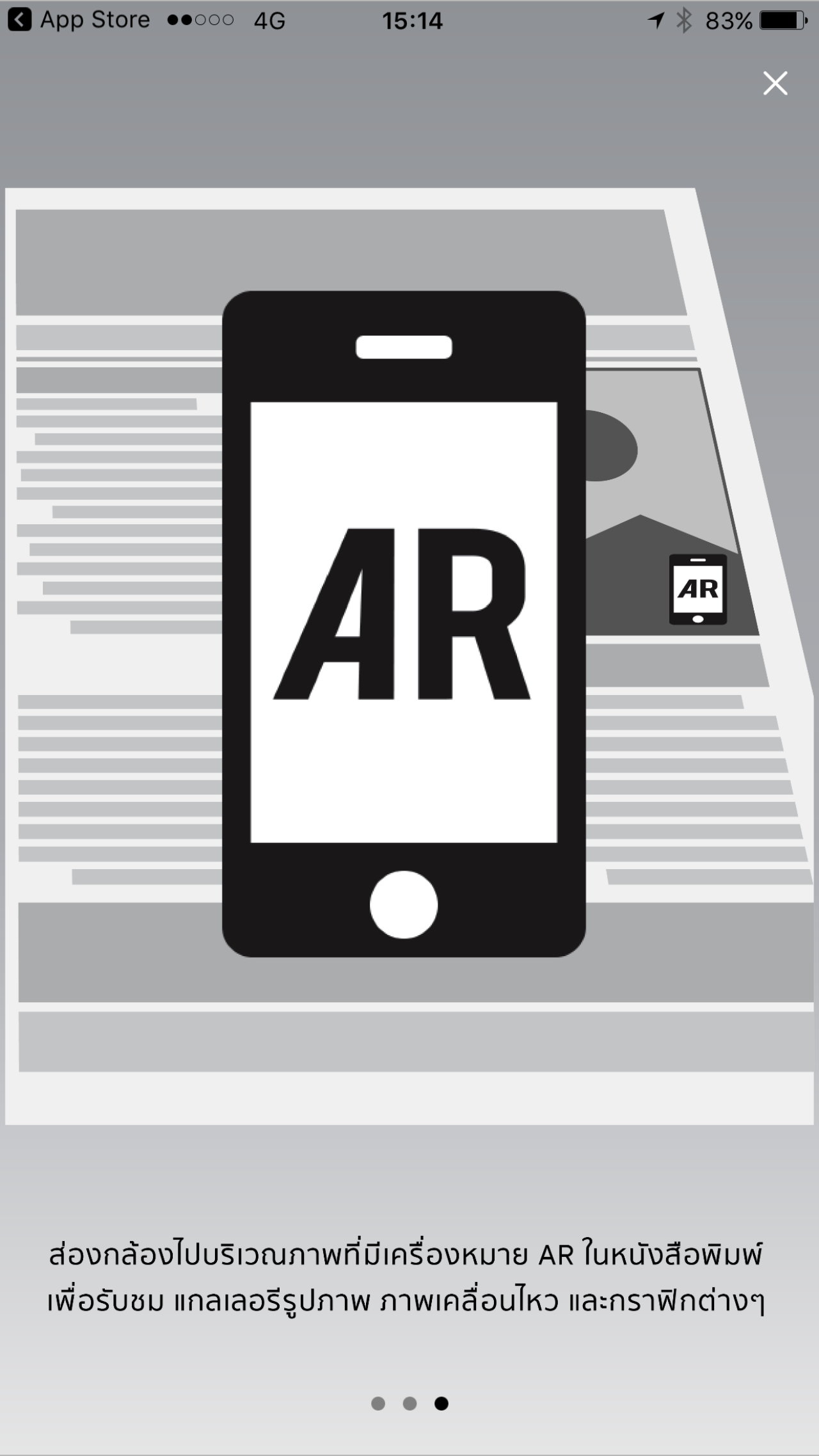 8. เนื้อหาที่สามารถใช้งานได้...จะมีสัญลักษณ์ AR ปรากฏอยู่ที่มุมด้านล่างขวา หรือซ้ายของเนื้อหา ซึ่งนั่นเป็นเครื่องหมายแนะนำว่าเนื้อหาส่วนดังกล่าวมีความพิเศษ