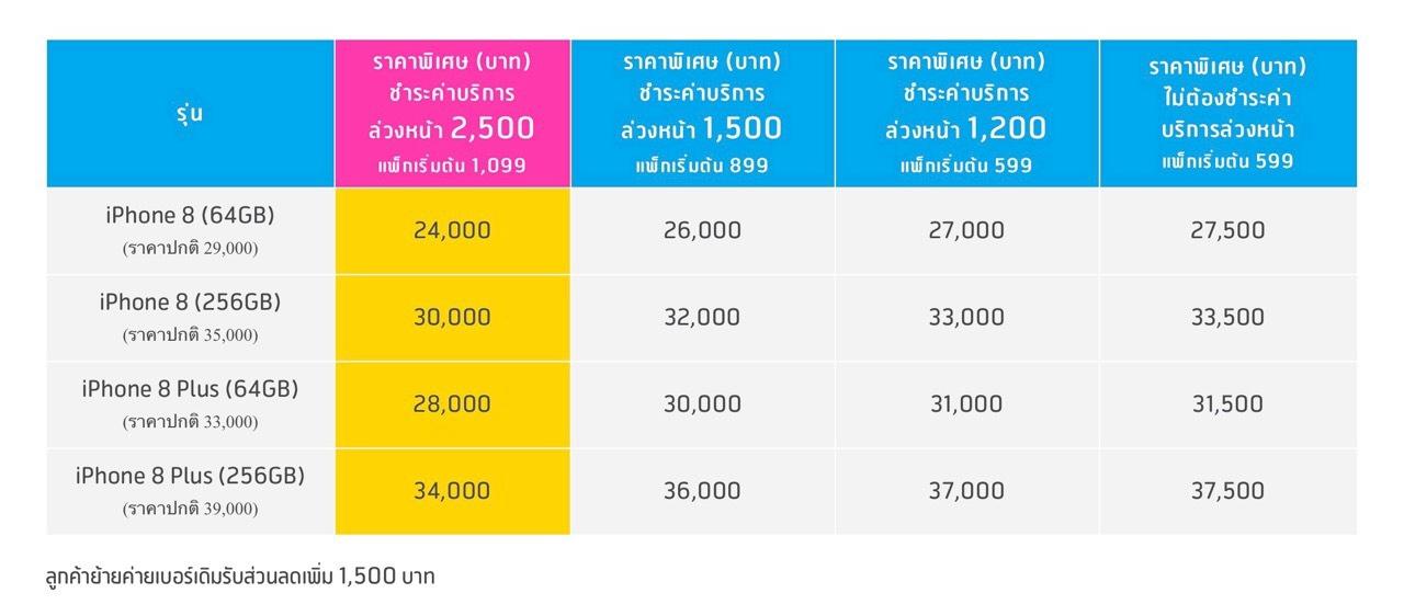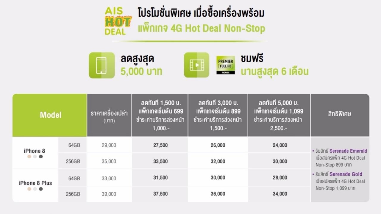 3. AIS: ทำราคาให้ลูกค้าได้ที่ 24,000 บาท สำหรับไอโฟน 8 64GB และ 28,000 บาท สำหรับไอโฟน 8 พลัส พร้อมมีสิทธิพิเศษอื่นๆ ด้วย