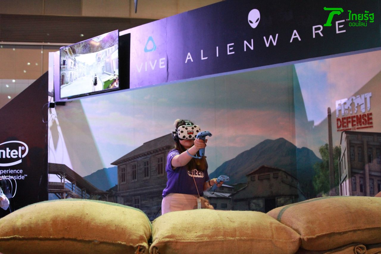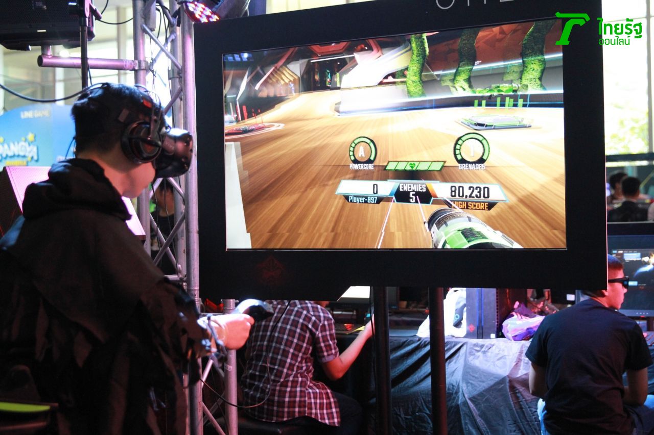 แต่ที่น่าสนใจไม่แพ้กันคือทางฝั่งของ HTC VIVE กับอุปกรณ์แทคโนโลยี VR (Vertual Reality) ซึ่งทางบูธเปิดให้ทดสอบโดยการสวมอุปกรณ์ HTC VIVE พร้อมๆ ไปกับการเล่นเกมที่รองระบบการใช้งาน VR ราวกับว่าเราได้หลุดไปอยู่ในโลกของเกมจริงๆ