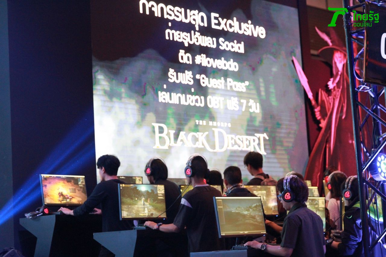 อลังการงานสร้างเลยทีเดียวสำหรับบูธ Black Desert เกมออนไลน์แนว MMORPG ที่ฮิตติดชาร์ตทั่วโลก ซึ่งกำลังจะมาเปิดในประเทศไทยภายในปีนี้ ภายในบูธจะมีกิจกรรมลงทะเบียนและคอมพิวเตอร์ให้ผู้เข้าชมไปนั่งทดลองเล่นกันอย่างจุใจวัยรุ่นกันเลยจ้า